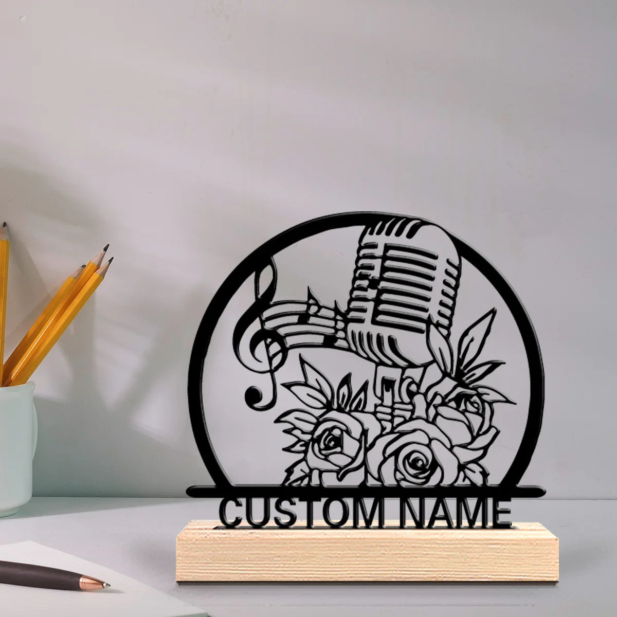 Diese elegante 2D-Metallfigur mit Holzsockel ist das perfekte Geschenk für Musikliebhaber, Sänger und Bühnenkünstler.