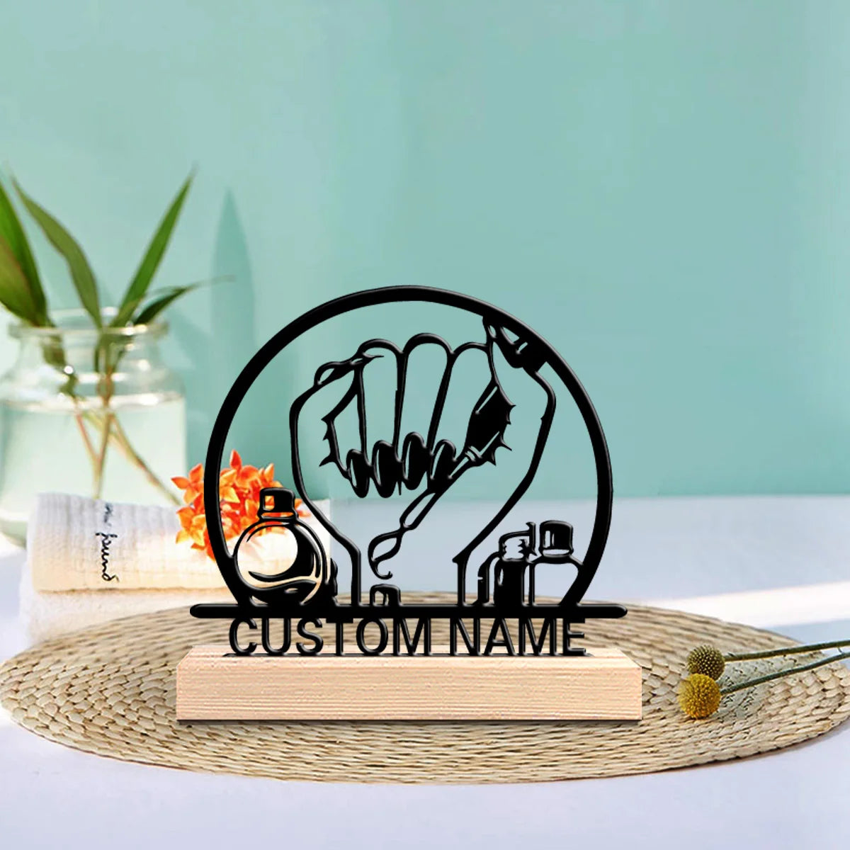 Diese elegante 2D-Metallfigur zeigt eine Nageldesignerin bei der Arbeit – ein Symbol für Kreativität, Präzision und Stil.