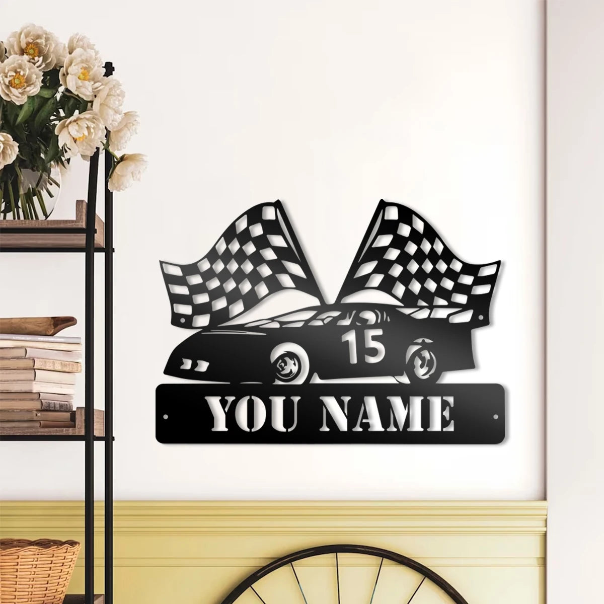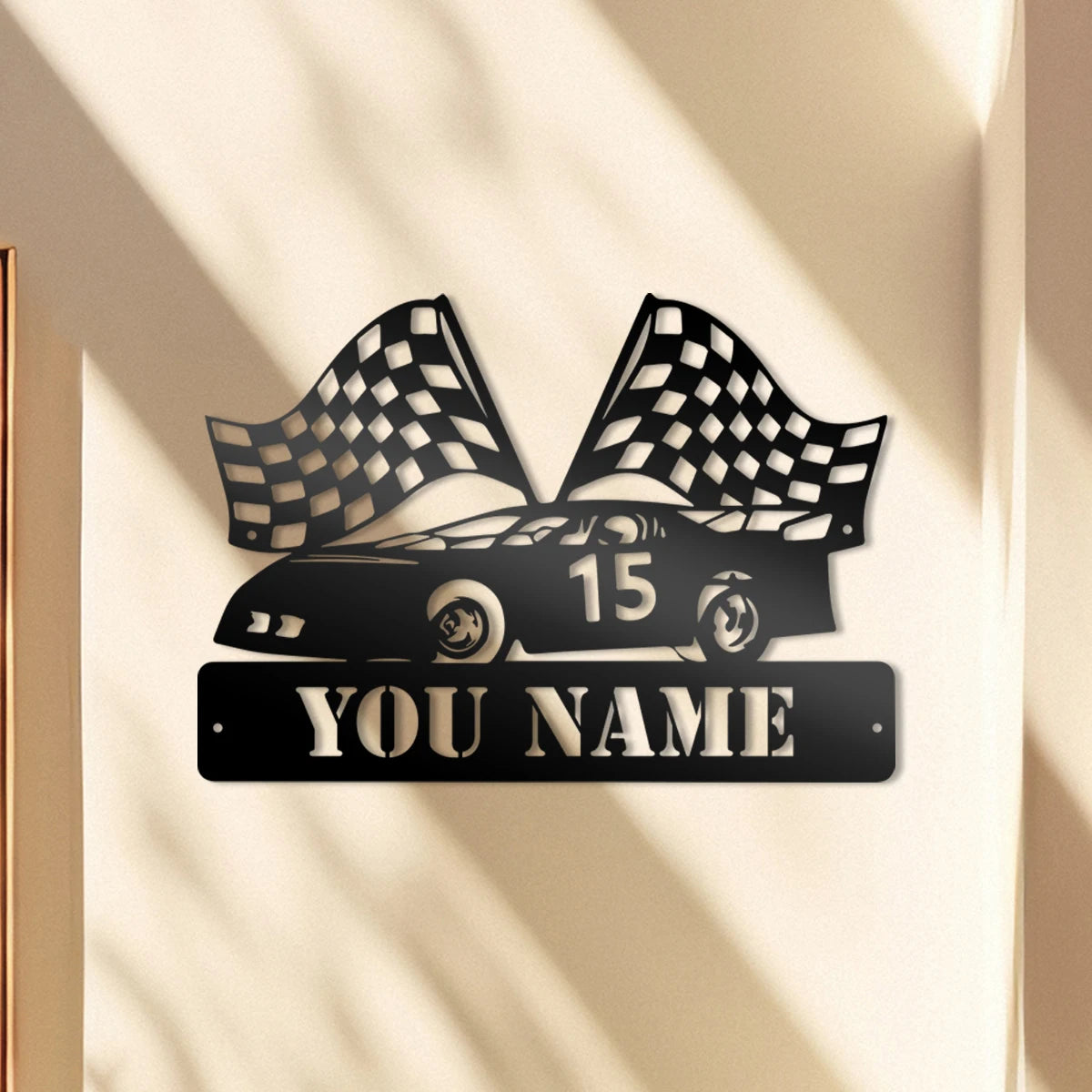 Diese moderne 2D-Metall-Wanddeko zeigt einen stilvollen Rennwagen in dynamischem Design – perfekt für Liebhaber von Geschwindigkeit und Motorsport.