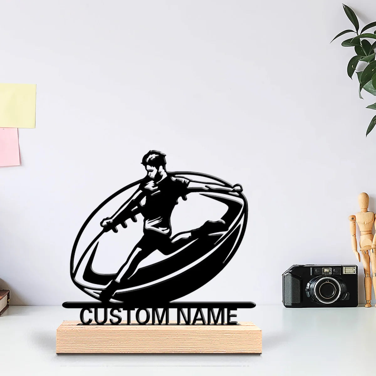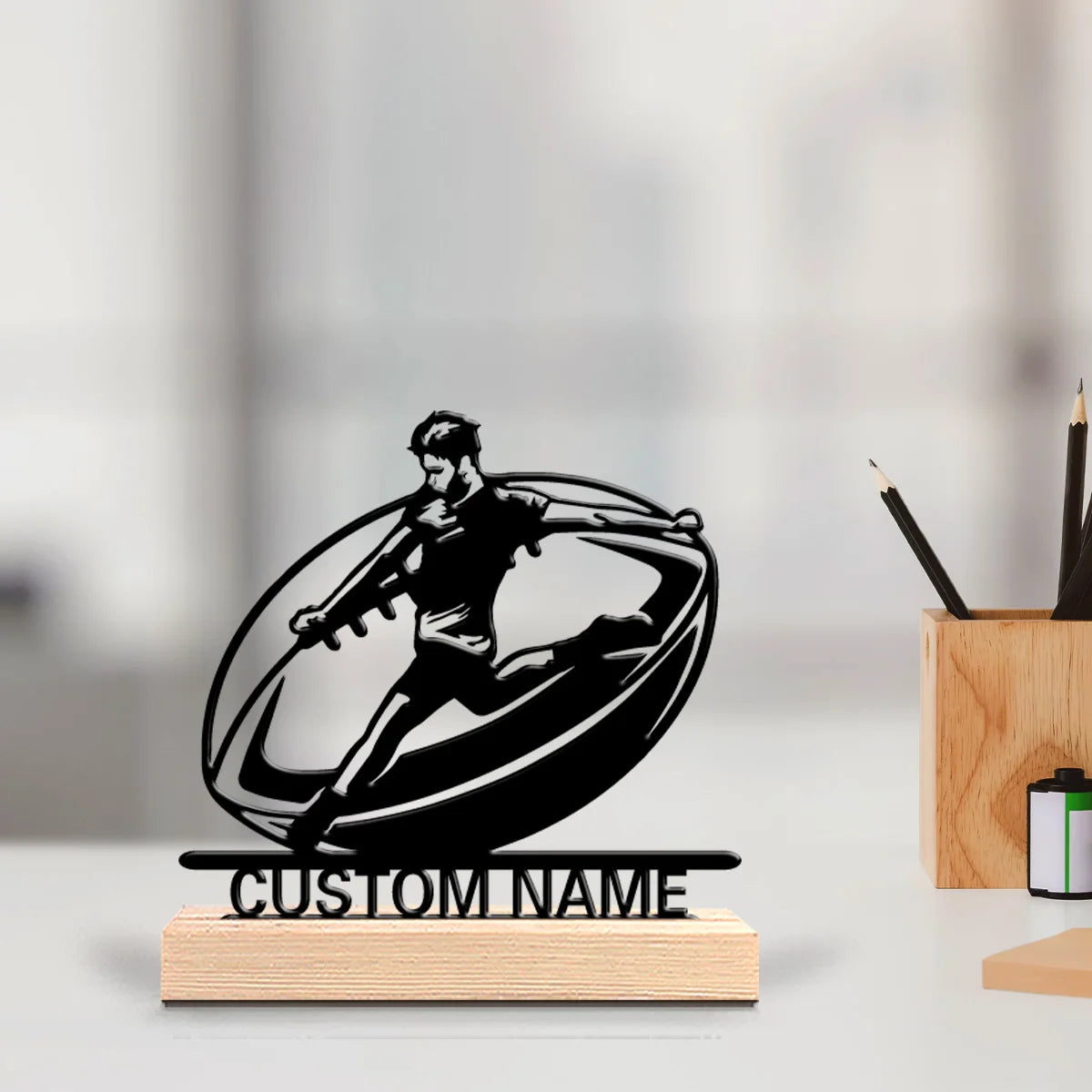 Gefertigt aus robustem Metall und auf einem edlen Holzsockel befestigt, ist sie das perfekte Geschenk für Männer, Rugbyliebhaber oder Teamkollegen.