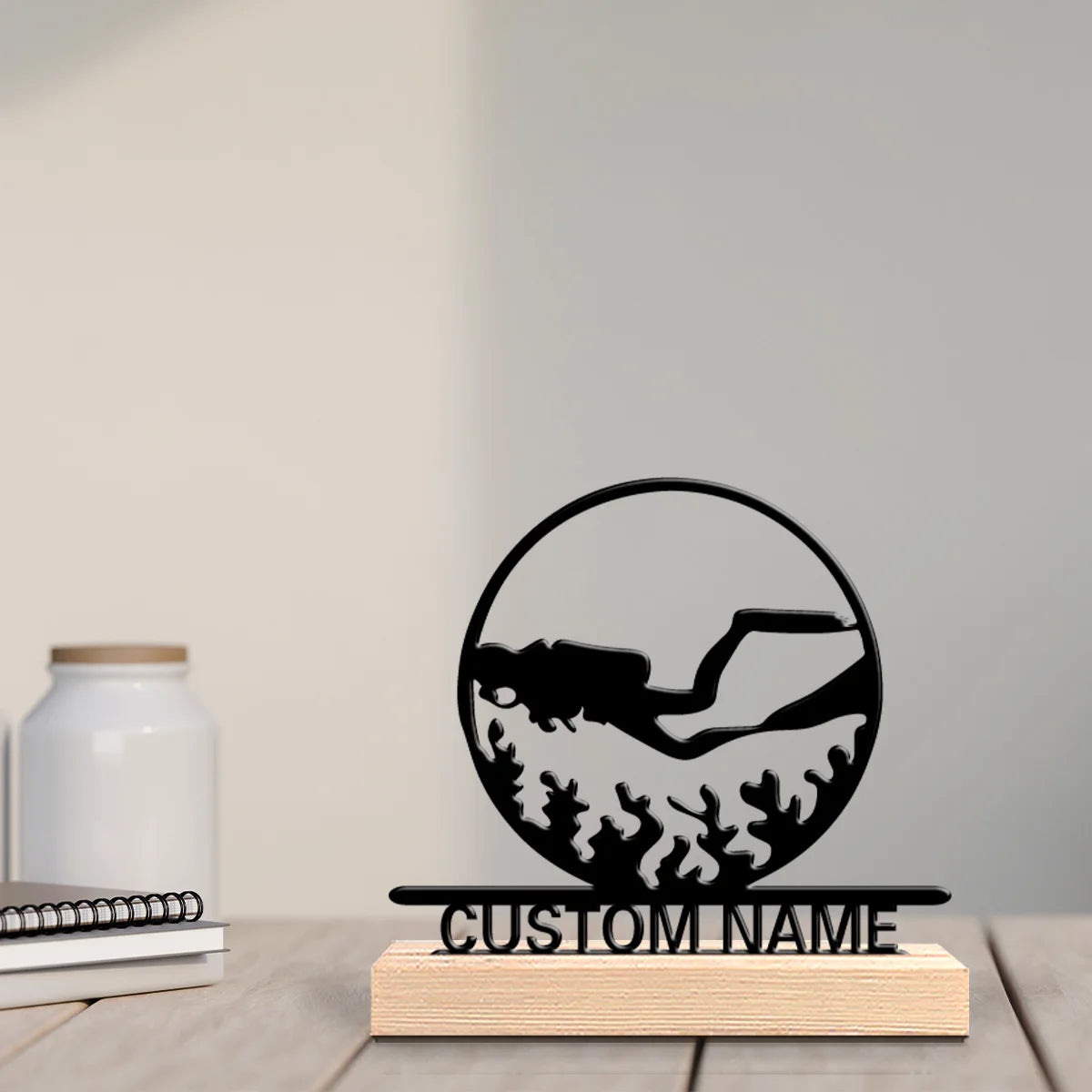 Diese beeindruckende 2D-Metallfigur zeigt einen Tiefseetaucher – ein Symbol für Abenteuer, Entdeckung und die Liebe zum Meer.